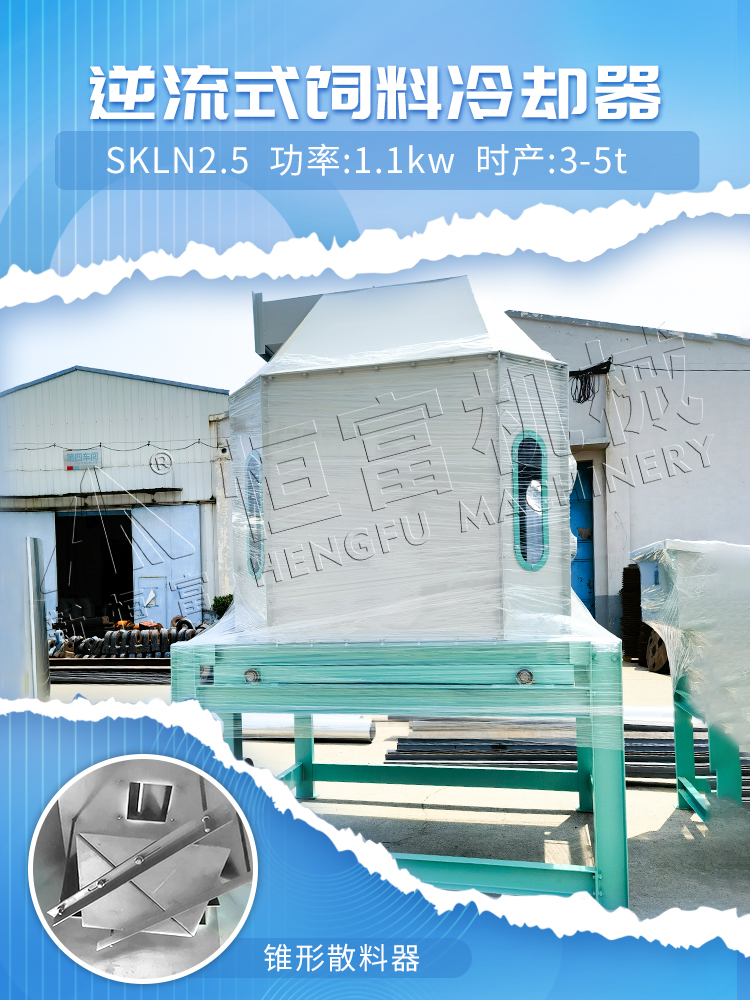 适用范围:大中型养殖场、饲料代加工厂各种颗粒饲料的冷却。 可冷却物料:秸秆颗粒、牧草颗粒、饲料颗粒、膨化颗粒等。