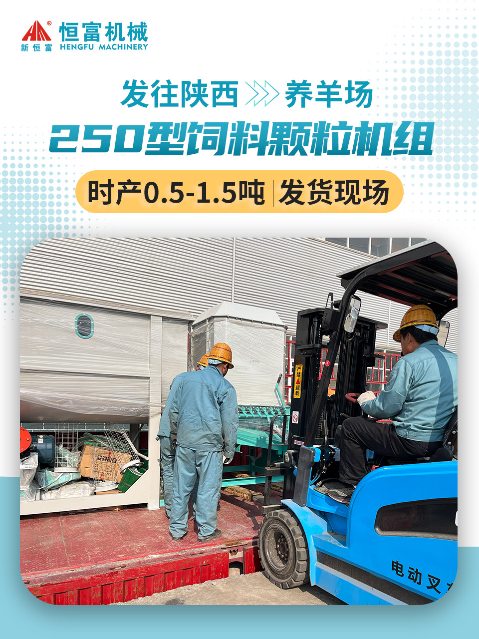 2025年10月23日,由河南恒富机械生产的250型颗粒饲料生产线,装车完成,现已发往陕西延安!