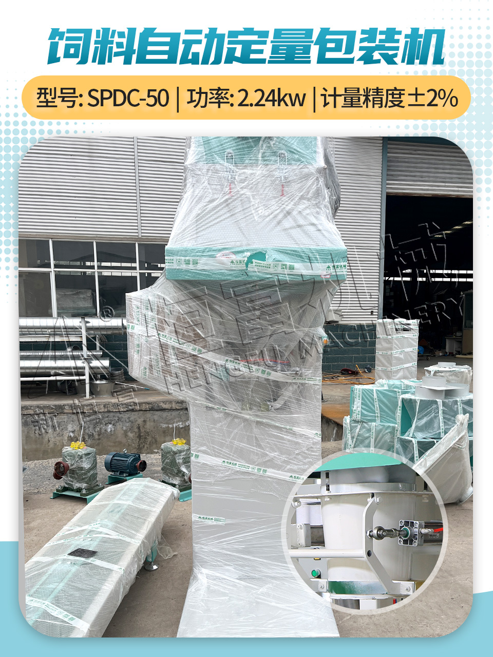 粉碎物料:草饲料(花生秧、花生壳、玉米秸秆)、精饲料(玉米、高粱、小麦)、药材等。 适用范围:医药、化工、饲料、粮食等行业。 设备名称:卧式单轴双螺旋饲料混合机。 混合均匀度变异系数:cv≤5%。 特点:内部采用双螺旋叶片结构,内外四条螺带,混合均匀度高。 设备名称:环模饲料颗粒机。 可加工颗粒:秸秆颗粒、牧草颗粒、饲料颗粒、猫砂颗粒等。 物料含水量:≤13%。 设备名称 :逆流翻板式冷却器。 特点:采用自动排料,停机时,可避免饲料间的交叉感染;大风口设计,加快冷却速度。 设备名称:自动定量打包机。 可包装物料:颗粒饲料、粉状饲料、粉粒饲料、粮食谷物等。 设备可实现:自动称重、自动输送、自动缝包。 装车中 相关新闻 | HENGFUJIXIE 发货新闻 . Delivery News 河北邢台--时产3-5吨粉状饲料加工机组,装车完成,已发走! 安装新闻 . Installation News 河南恒富机械-成套饲料加工设备安装进度【2025-10-22】 河南恒富机械-成套饲料加工设备安装进度【2025-10-14】 河南恒富机械-成套饲料加工设备安装进度【2025-9-23】 河南恒富机械-成套饲料加工设备安装进度【2025-9-16】 公司新闻 .Company News [恒富机械]直击广交会现场精彩瞬间!-Exciting moments at the Canton Fair! 恒富机械一家集生产、科研、销售、安装、售后于一体的实体企业。 如果您有饲料加工方面的需求,点击下方立即咨询~